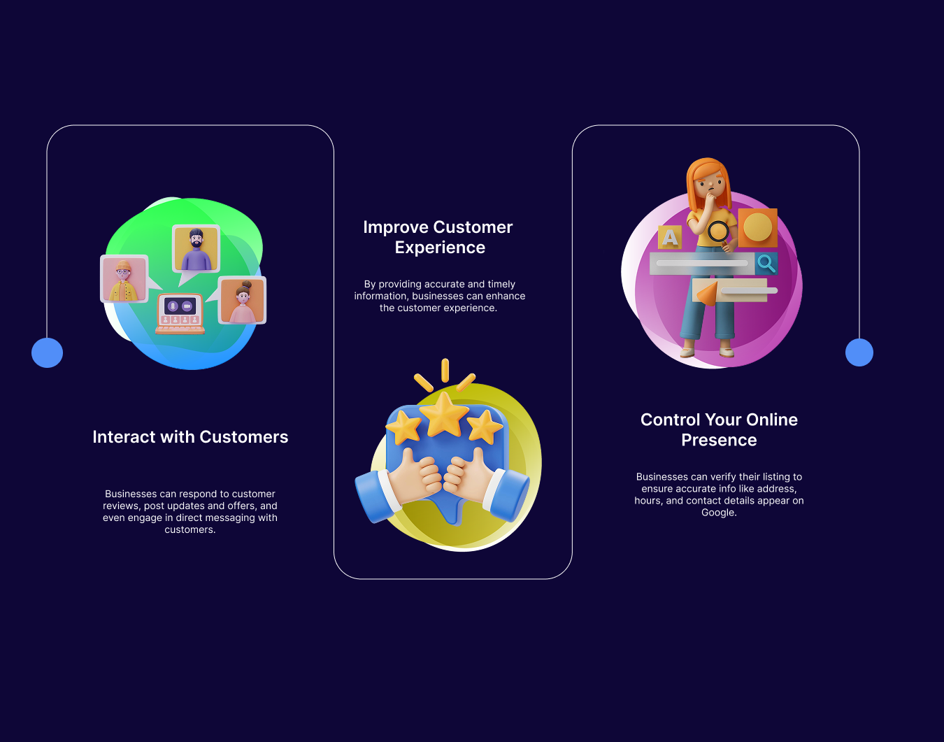 information about their business, such as location, contact details, hours, and website, enabling customers to find them easily and connect with them.