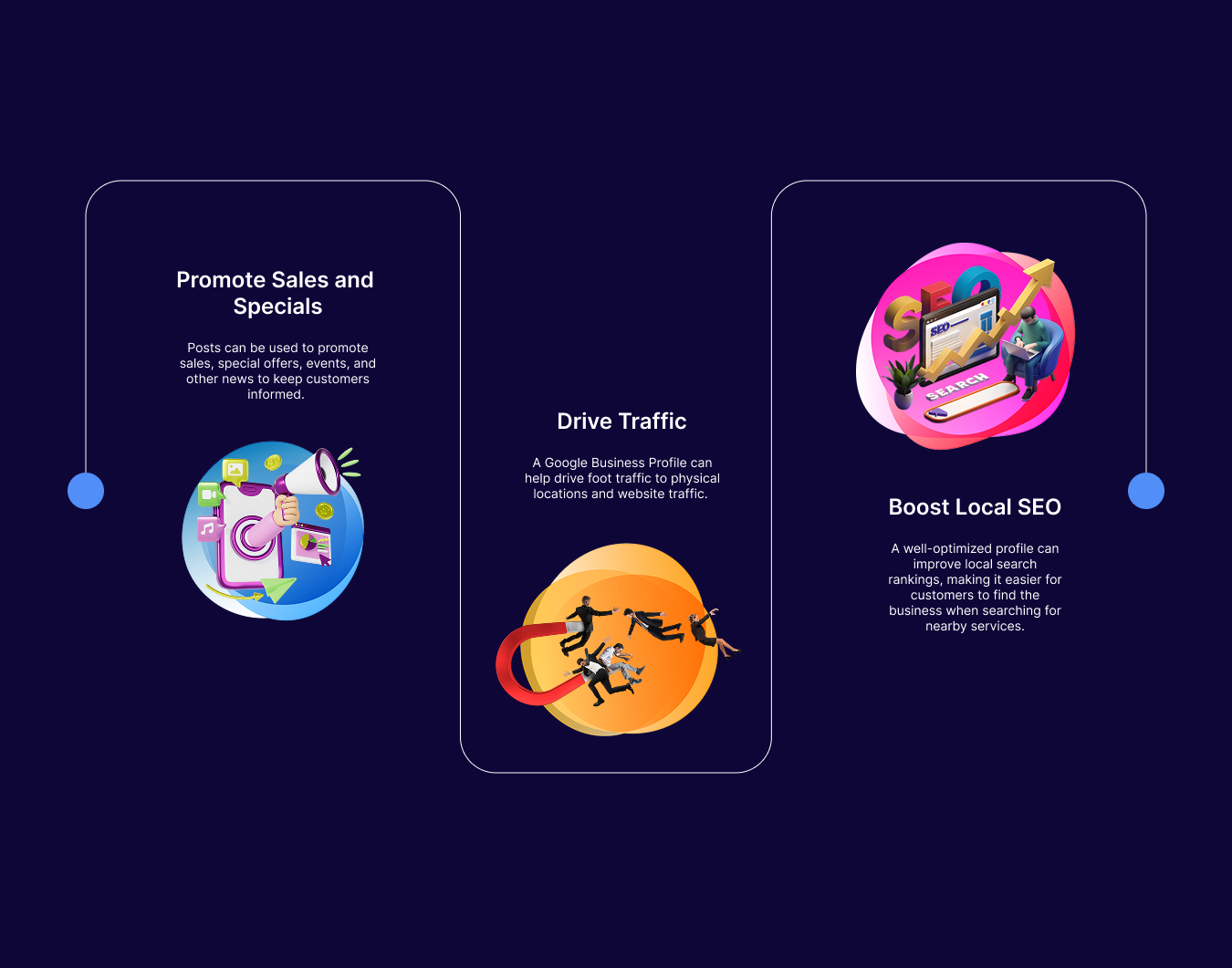 GMB puts your business in local searches, helping you compete and grow